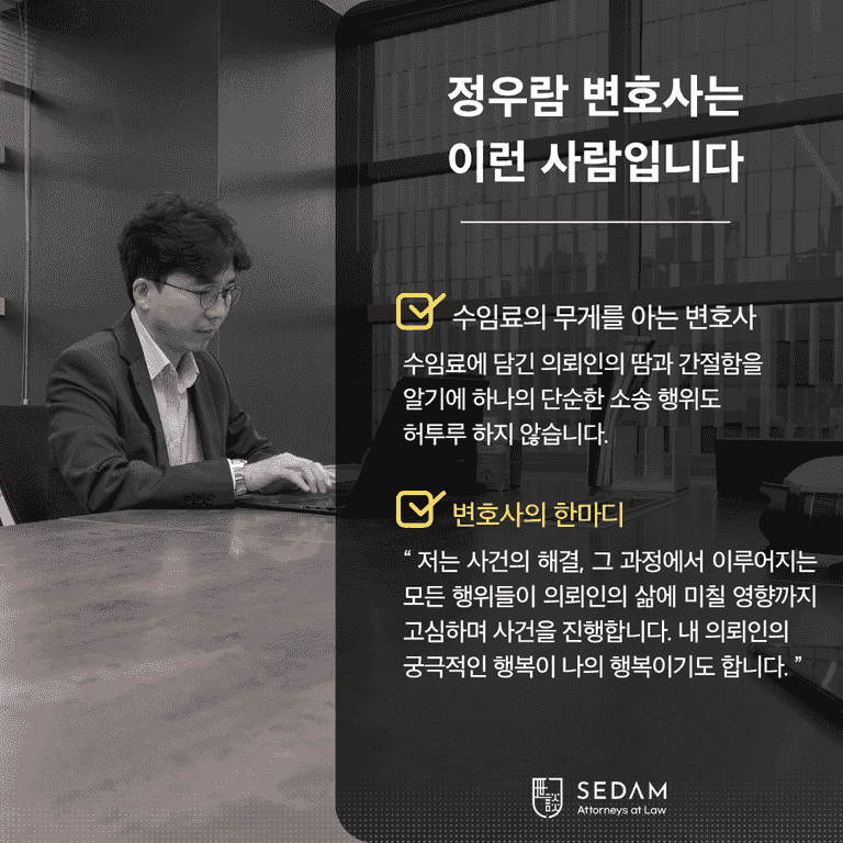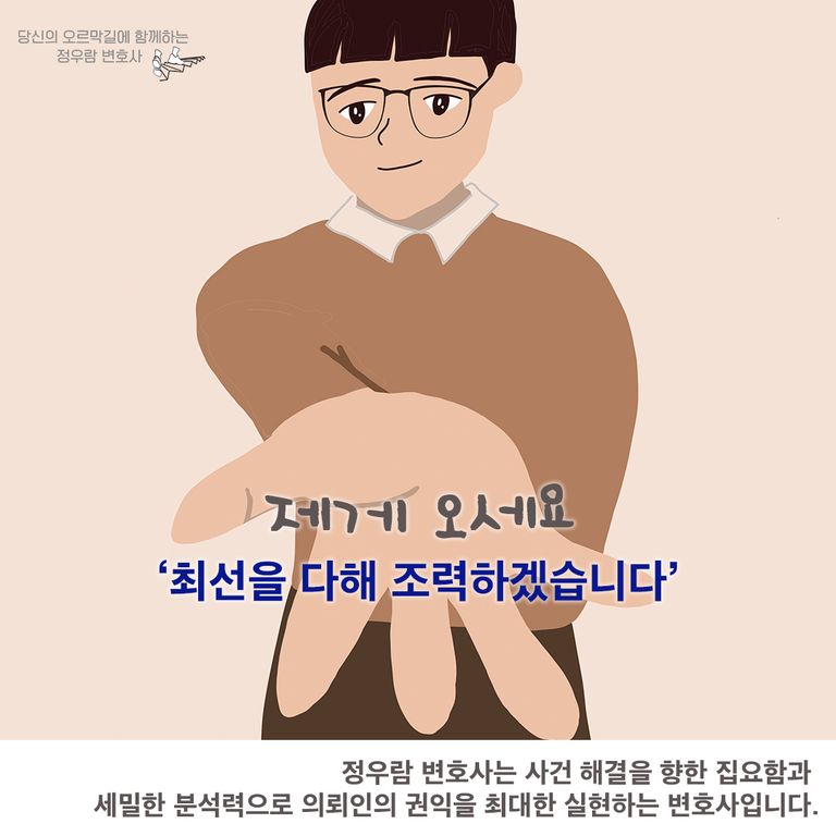정우람 변호사는 의뢰인의 삶이 다시 안정된 방향으로 나아가도록 끝까지 함께하는 변호사입니다.