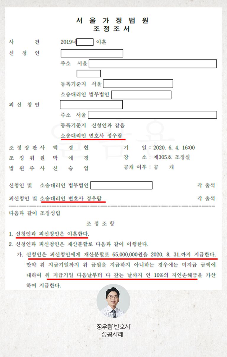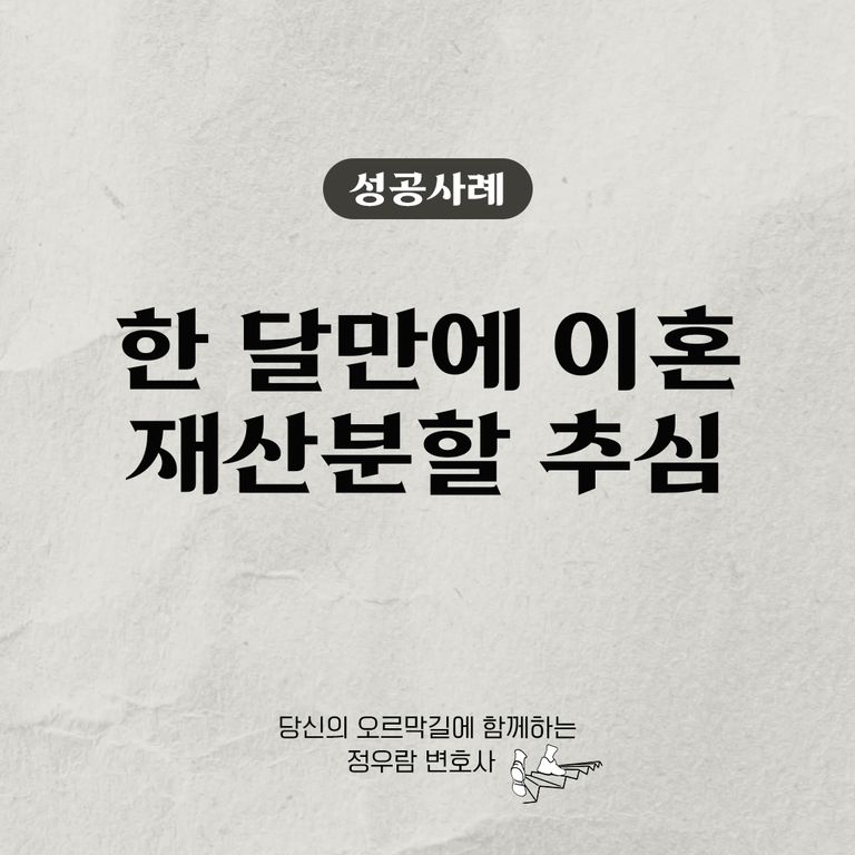 이 사건은 단 한 달여만에 이혼 조정을 성립하고 재산분할금 추심에 성공한 사건입니다.