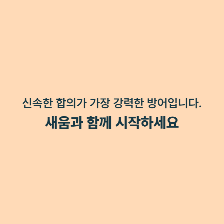 또한, 협의가 결렬될 경우에도 향후 소송에서 불리하지 않도록 모든 대화 내역과 합의 과정의 기록을 법적으로 정돈해두기 때문에, 사후 분쟁을 예방하는 효과가 있습니다.