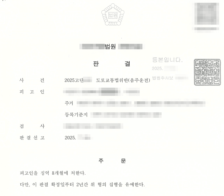 최종 징역 8개월에 집행유예가 선고되었습니다. 의뢰인은 다행히도 구속을 면할 수 있게 되었습니다.