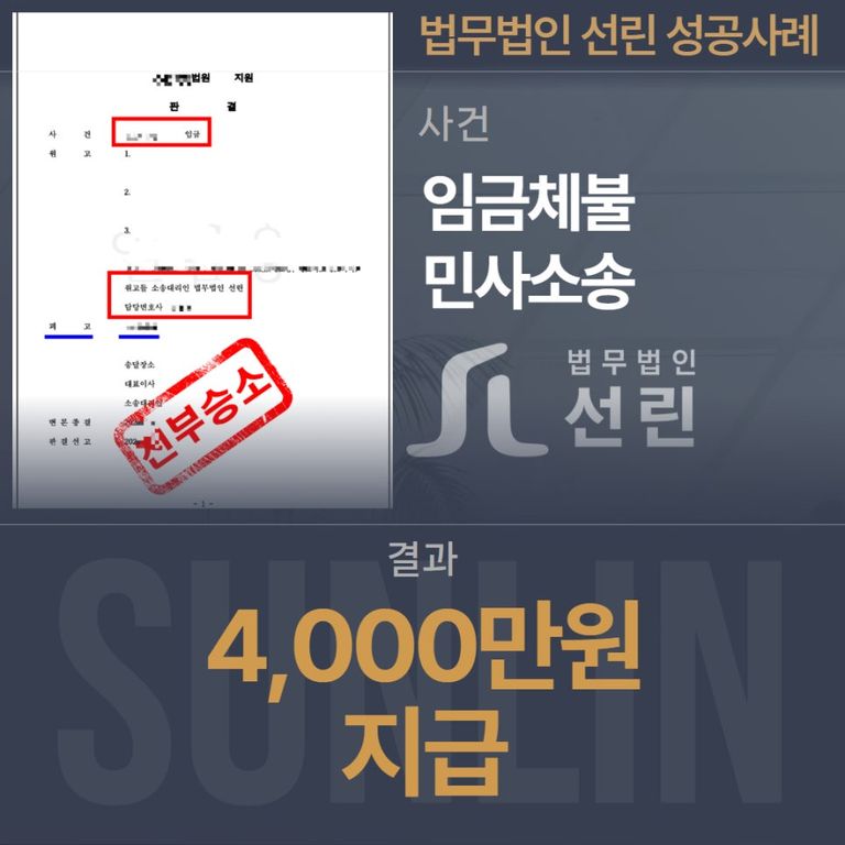 임금체불 민사소송 → 결과 : ‘4,000만원’ 지급 판결