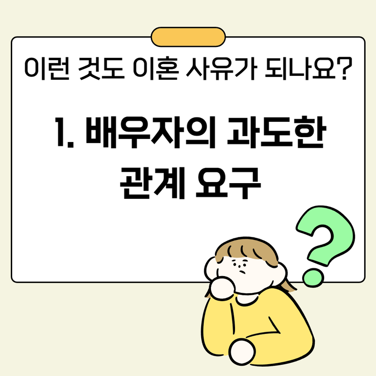 배우자의 일방적이거나 과도한 관계 요구로 인해 갈등을 겪고 계시는 분들 중 "이런 상황도 이혼 사유가 될 수 있을까" 하고 고민하시는 분들이 있습니다.