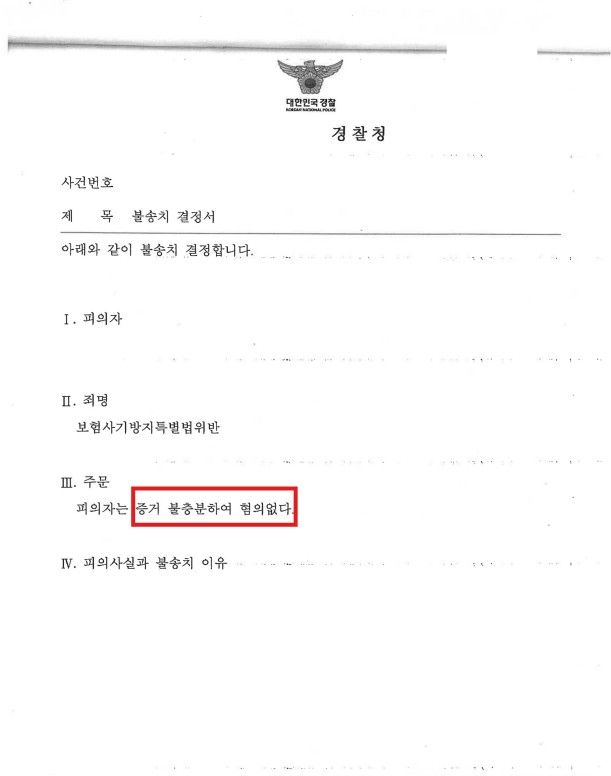 [보험사기] 보험사기방지특별법 위반 무혐의 사례