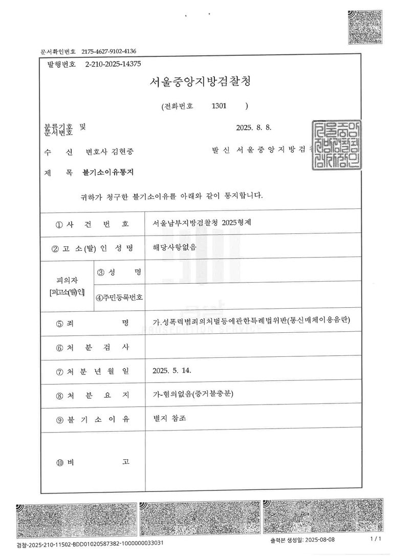 이에 피의자는 경찰단계에서 통매음 혐의가 인정되어 사건이 검찰로 송치 되었습니다.