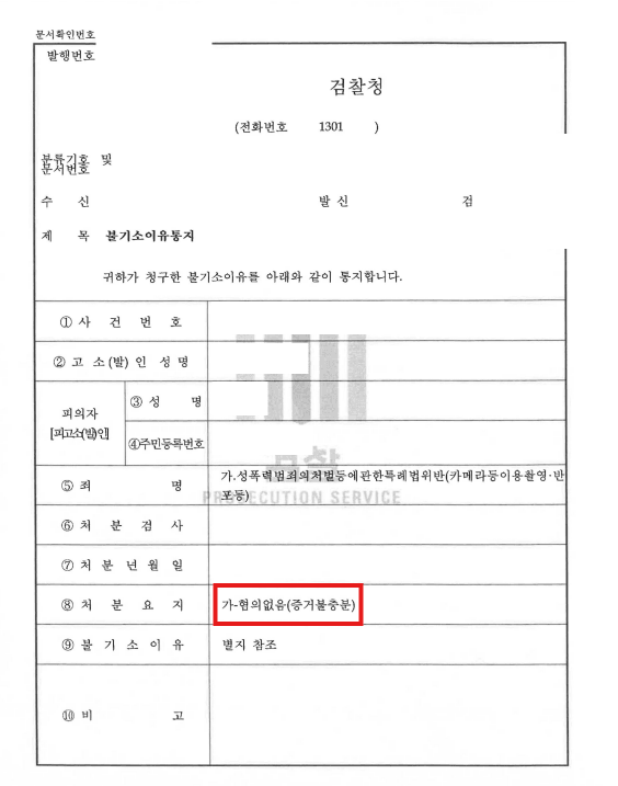 처분/결과 - [혐의없음(증거불충분) 불기소]