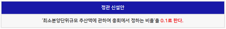 주택을 공급할 수 있는 최소분양단위규모 추산액 기준 비율’을 정하는 내용을 정관에 신설하는 안건에 대해