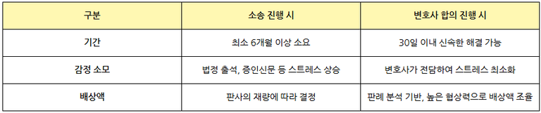 소송보다 변호사를 통한 합의가 훨씬 유리한 전략이 될 수 있습니다.