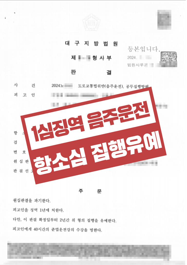 징역 1년 → 징역 1년, 집행유예 2년 + 준법운전강의 40시간