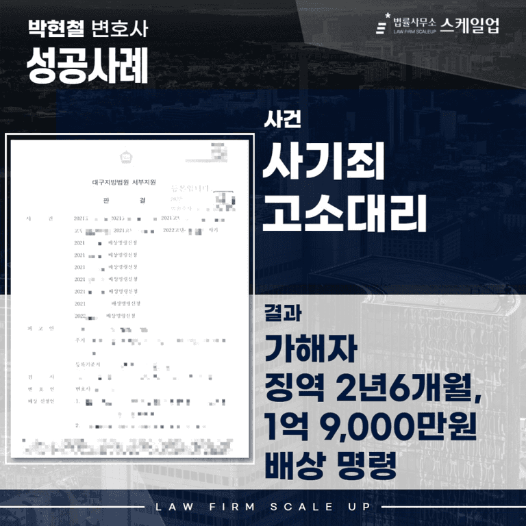 안녕하세요. 법률사무소 스케일업, “사기 전문 박현철 변호사”입니다.