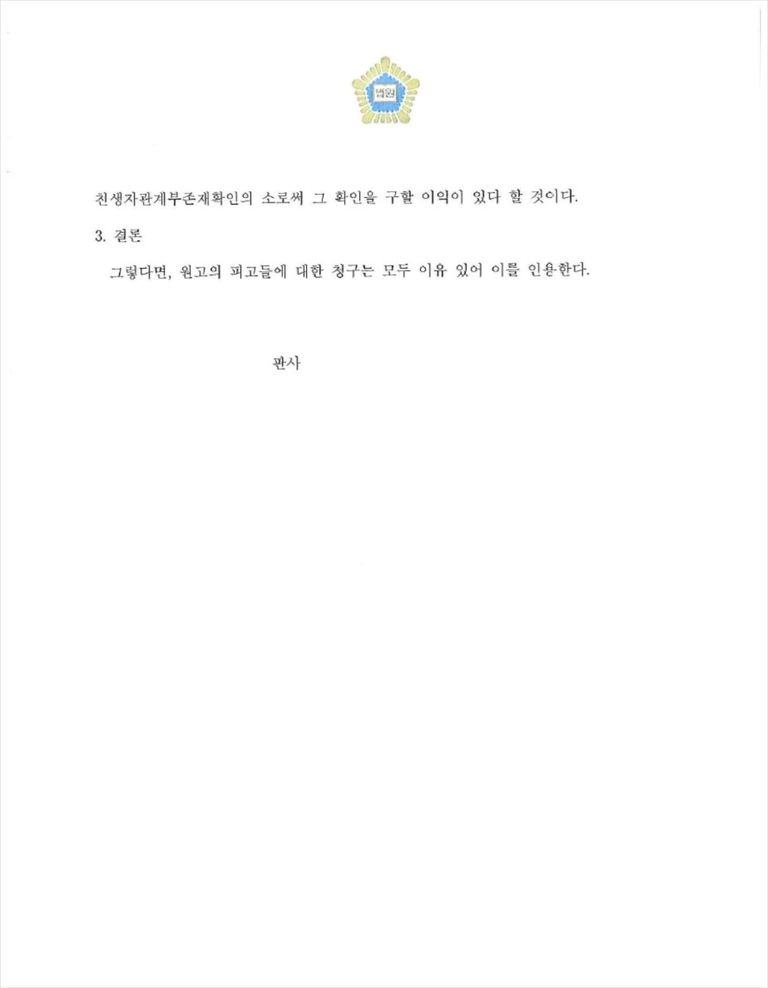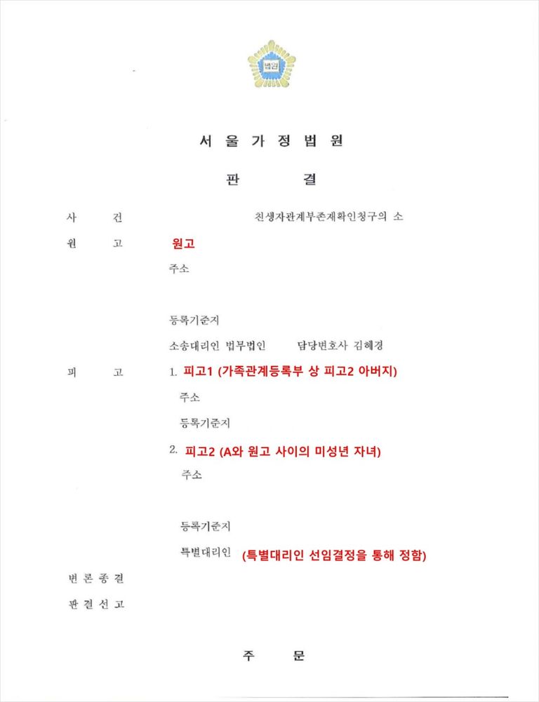 진행했던 친생자관계부존재확인소송 사례에 대해서 소개해드리겠습니다.