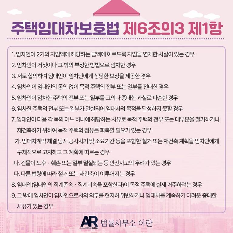 다만 아래의 9가지 경우 중 하나에 해당한다면 갱신을 거절할 수 있습니다.