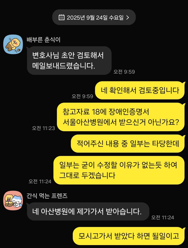 위와 같이 변호인의견서를 가다듬는 과정에서 변호사가 직접 의뢰인과 참고자료 하나 하나 의견 취합하고 검토할 정도로 소통이 활발하였습니다.