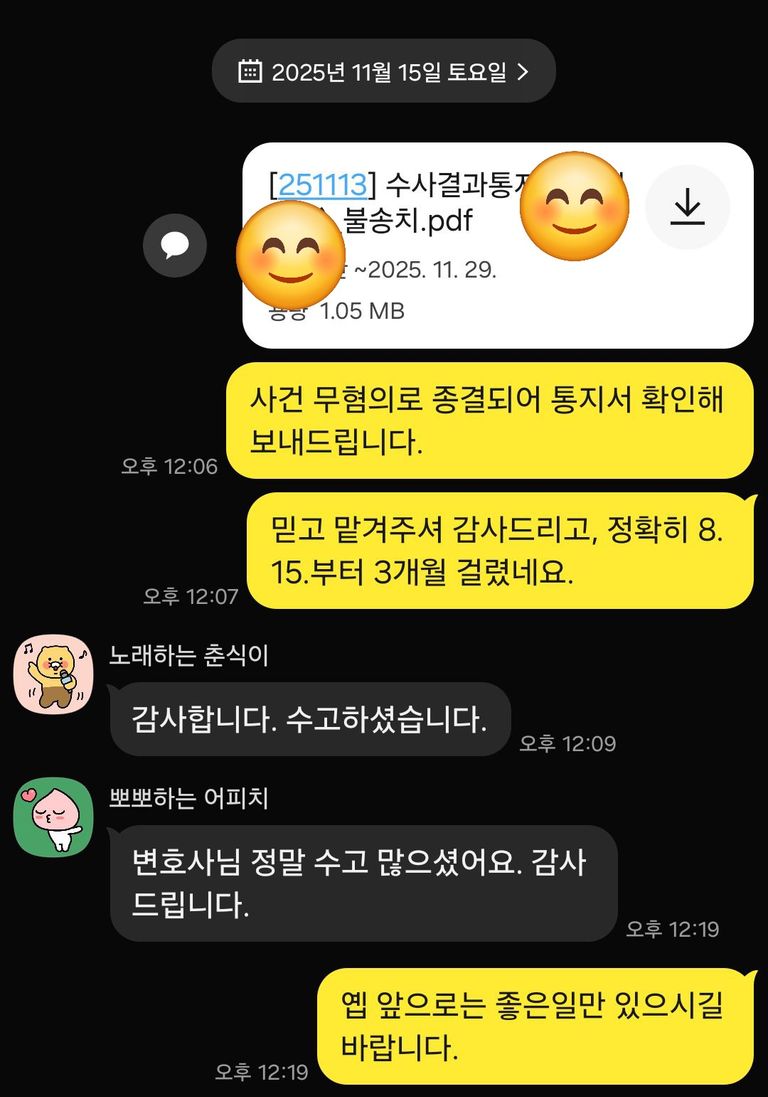 불송치 또는 불기소、불입건으로 끝내드린 성공사례를 보유중이고