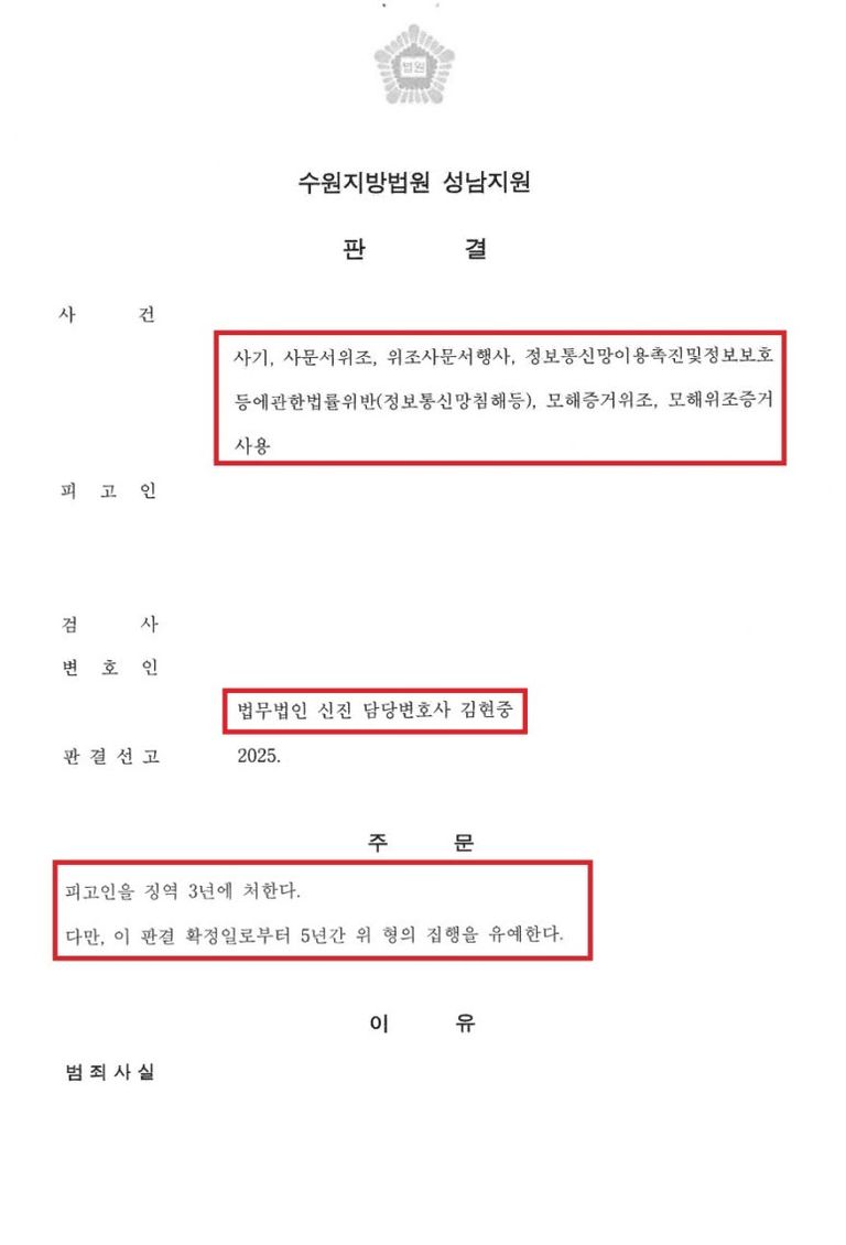 다행히도 의뢰인에게 징역 3년에 집행유예 5년 형이 선고가 되었습니다.