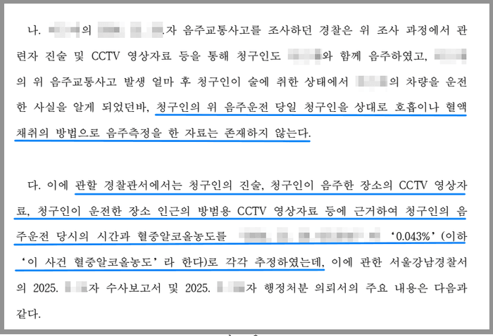 변호인은 그간 수행한 다수 사건의 경험을 바탕으로 이 사건에서 경찰의 처분은 위와 같은 위드마크공식 적용의 한계를 고려하지 아니하고, 대법원 판결의 취지에도 부합하지 않는 것이라는 점을 논리적이고 체계적으로 정리하여 행정심판을 청구하였습니다.