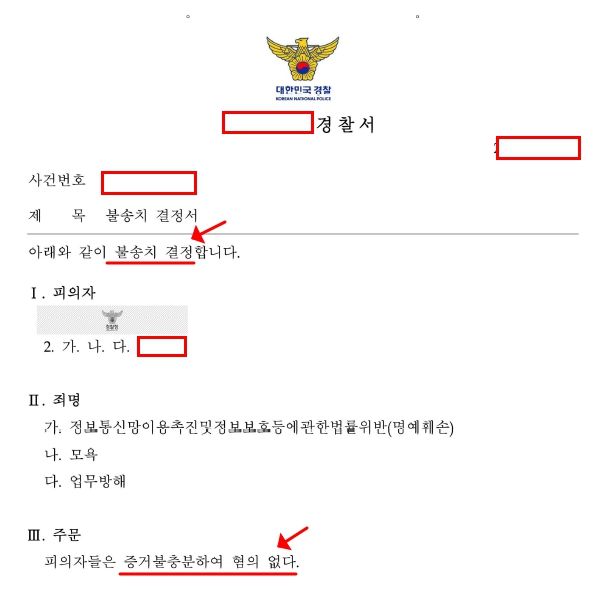 [태연법률사무소 성공 사례, 인터넷 명예훼손죄와 모욕죄 무혐의 불송치]