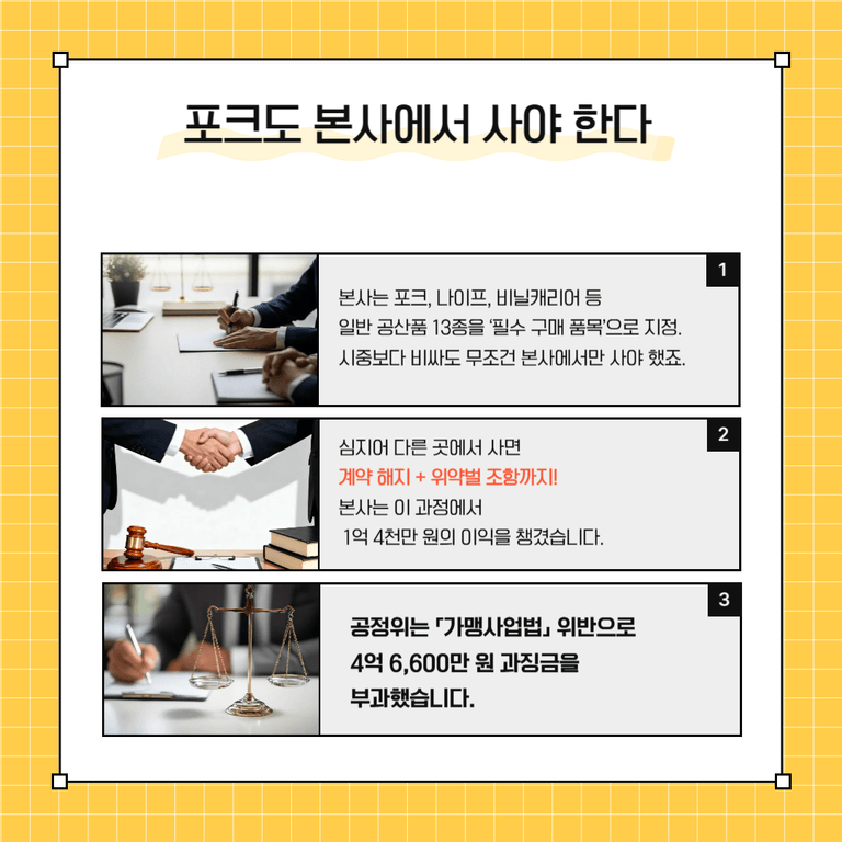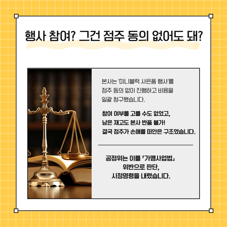 가맹본부가 브랜드 통일성이라는 명분을 내세웠으나