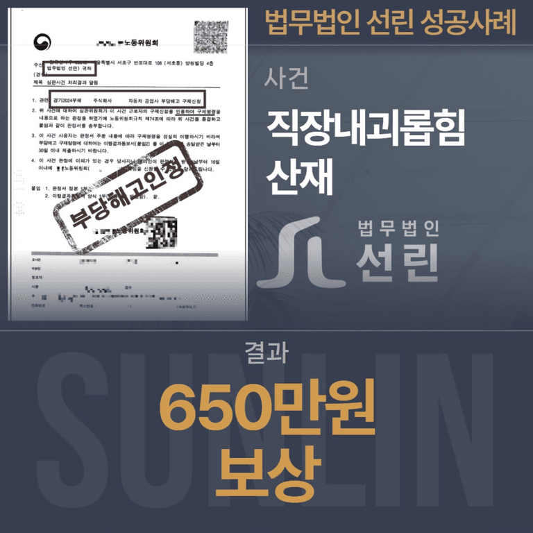 • 직장 내 괴롭힘 인정: 해고 이후에도 반복적인 모욕과 부당지시가 있었음