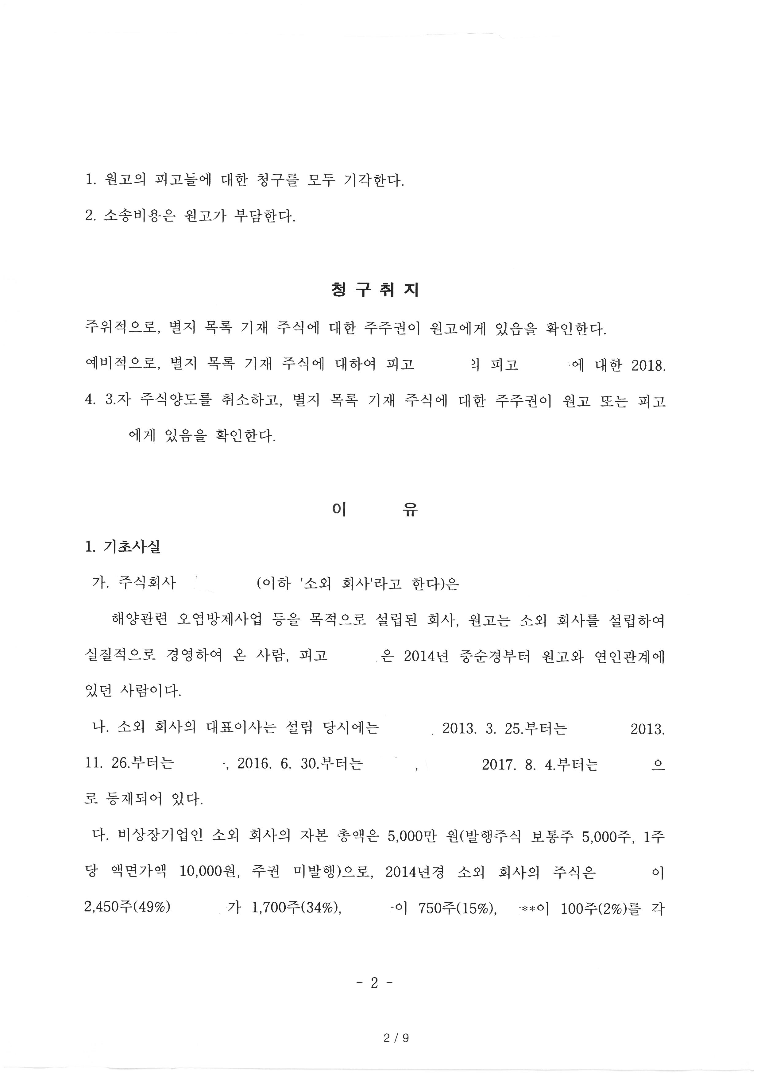 그 결과 법원은 의뢰인이 회사의 진정한 주주가 맞다고 하며 상대방의 청구를 모두 기각하였습니다.