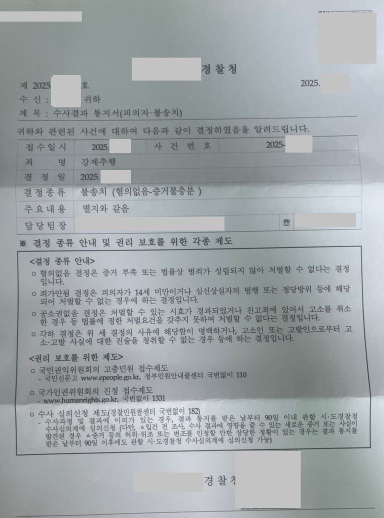 다행히 변호인 의견서의 내용이 자연스럽고 합리적으로 구성되어 있었던 덕분에 수사관님을 설득할 수 있었고, 사건은 무사히 불송치 결정으로 종결되었습니다.