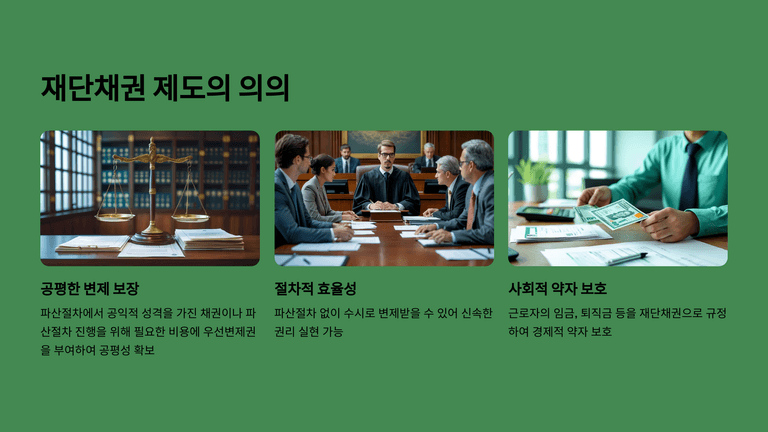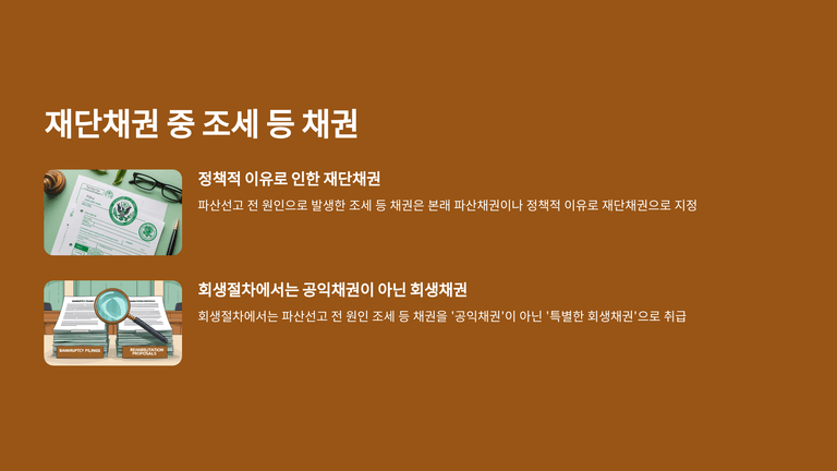 조세·임금 등은 공익상 필요로 재단채권에 포함되며, 이는 회생절차에서 ‘특별한 회생채권’으로 취급된다.