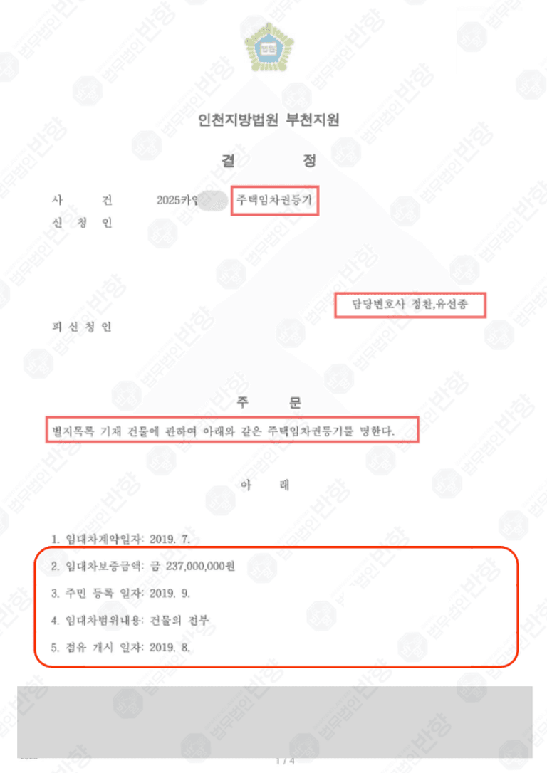인천지방법원 부천지원은 2025년 9월, A씨의 신청을 받아들여 주택임차권등기명령을 인가했습니다.