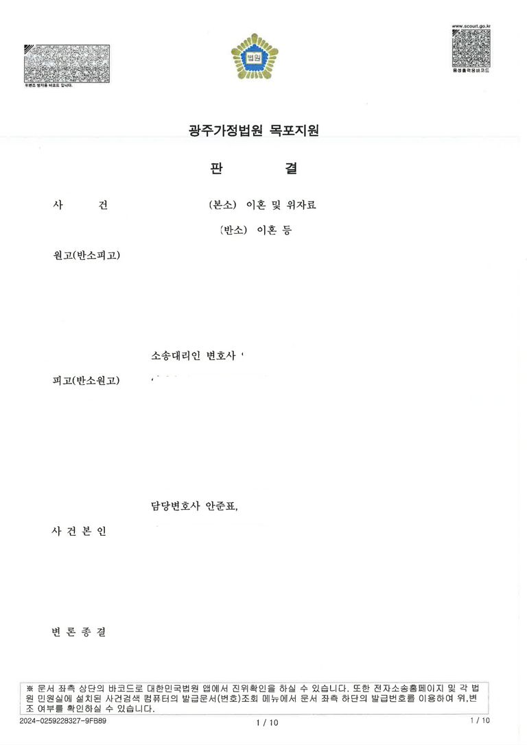 안녕하세요, 광주 변호사 안준표입니다. 이번 사례는 부부 모두에게 책임이 있는 혼인 파탄이었음에도, 위자료청구를 기각시키고 재산분할도 최소화하여 의뢰인에게 유리하게 이끌어낸 사례입니다.
