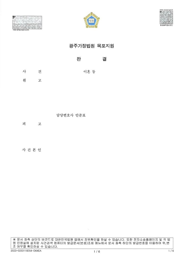 안녕하세요, 광주 변호사 안준표입니다. 이번 사례는 상대방의 상습적 외박, 음주운전으로 인한 수차례의 구속, 폭력 문제 등 중대한 귀책 사유를 법원이 인정한 사건입니다.