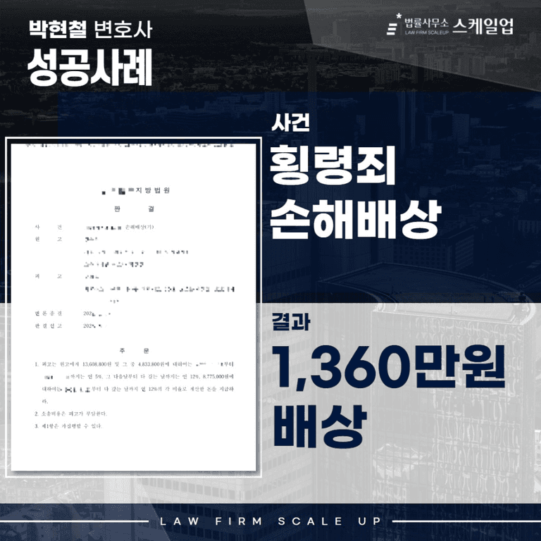 피고 B씨가 의뢰인의 위임관계에 따라 거래대금을 보관하던 중 이를 임의로 사용한 사실이 인정되어 형사 재판에서는 징역형의 집행유예가 선고되었습니다. 또한 민사 재판에서는 1,360만 원 전액 손해배상 명령이 내려졌습니다.