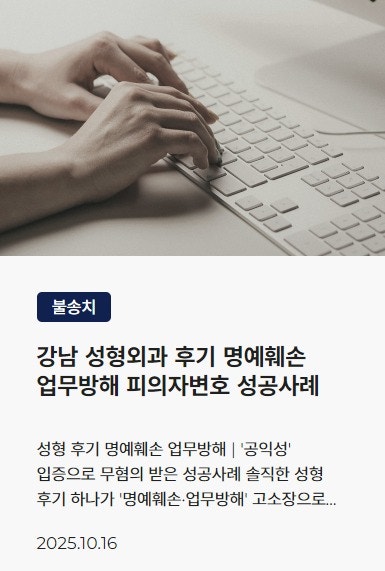 ![[명예훼손] 리뷰 고소 처벌 위기? 대처법 확인](/_next/image?url=https%3A%2F%2Fd2ai3ajp99ywjy.cloudfront.net%2Fuploads%2Ftitleimage%2Foriginal%2F5cf416b01267e04485e6631c-original.jpg&w=3840&q=75)