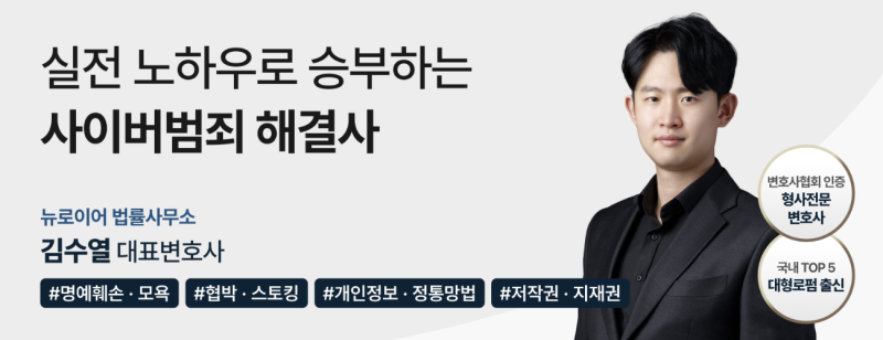 명예훼손 전문, 사이버범죄 해결사 로펌 뉴로이어 법률사무소에서 안내해드리려고 합니다.