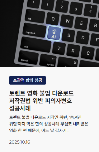 오늘 글에서는 솔리드웍스 사건을 여러번 해결하고 토렌트 다운로드 사건 합의 대행을 이끈 경험을 보유한