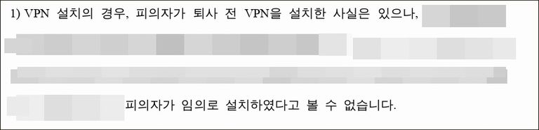 • 정보통신망법 위반 혐의에 대하여: "의뢰인은 해킹을 한 것이 아니라, 퇴사 전 사용하던 노트북의 VPN 자동로그인 기능 때문에 의도치 않게 접속된 것입니다. 실제로 데이터를 대량 다운로드한 것이 아니라, 문을 열고 들어갈 때 발자국이 남는 것처럼 접속 과정에서 발생하는 극소량의 트래픽 기록이 전부였습니다."