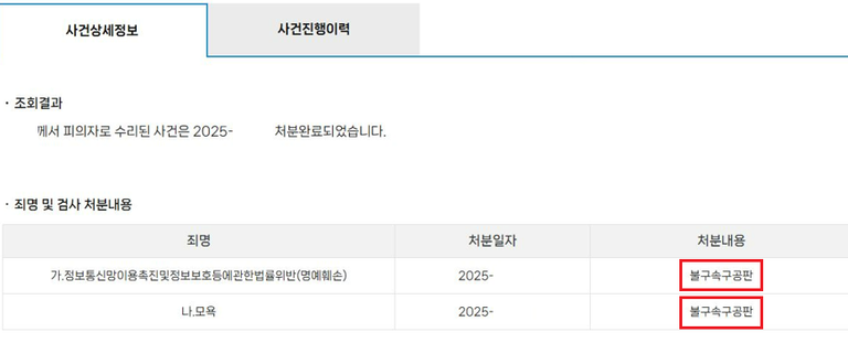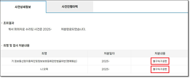 악플러 고소 최종 결과 : 정식기소 (구공판)