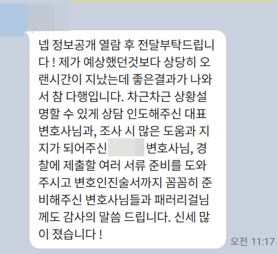 실제 의뢰인분 감사후기 : ) - 평온한 일상으로 되돌아가시길 바라겠습니다.