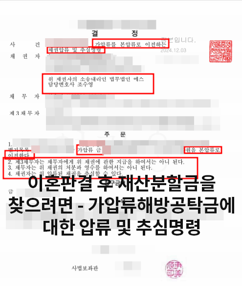 이혼판결 후 재산분할금을 찾으려면 - 가압류해방공탁금에 대한 압류 및 추심명령