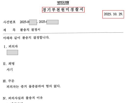 최근(2025. 10. 29.) 부천원미경찰서에서 사기 사건으로 고소 당한 사건을 방어하여 불송치(혐의없음) 처분을 받은 성공사례가 있어 이를 알려드리고자 글을 써봅니다.