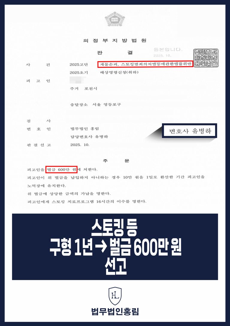 이는 스토킹 처벌법 위반이라는 중대 범죄 혐의에 대해 피해자가 엄벌을 요청했음에도 불구하고 징역형의 위험에서 벗어나 일상생활을 유지할 수 있게 된 매우 성공적인 방어 사례로 평가됩니다.
