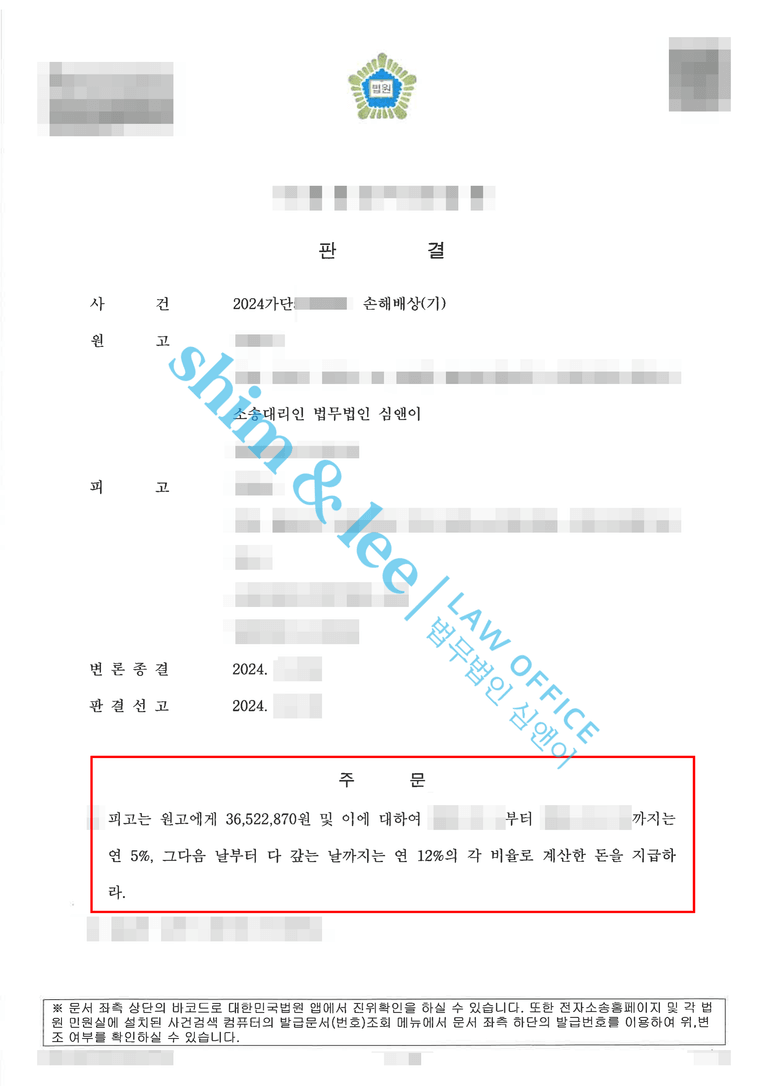 - 따라서 심앤이는 1심에서 인정된 3,652만 원보다 약 1,500만 원 증액된 금액을 인용 받는 뿌듯한 결과를 얻었습니다.