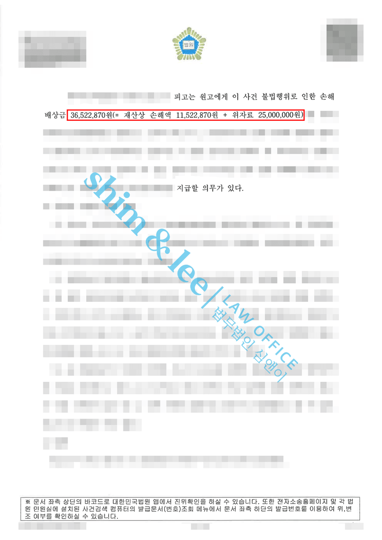 - 이후 피해자는 가해자의 불법행위로 인한 민사상 손해배상을 청구하고자 다시 한 번 심앤이를 찾아오셨습니다.