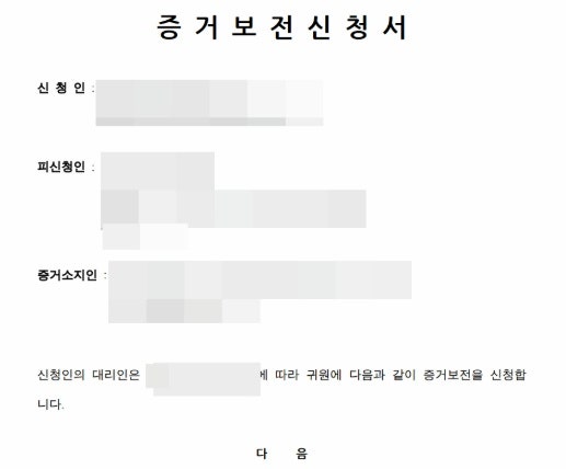 저희가 실제로 작성한 증거보전신청서