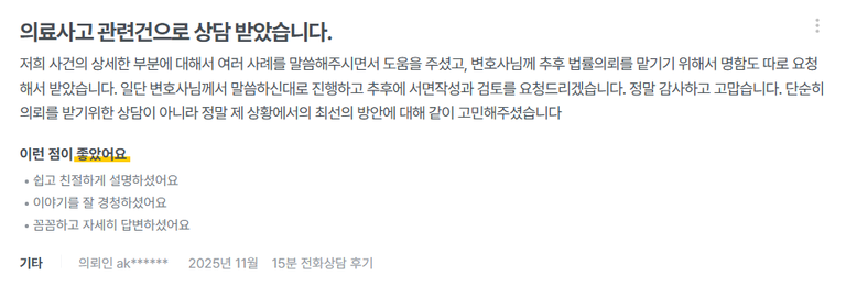 만약 현재 의료사고 관련 고소를 받으셨다면, 지금 즉시 전문 상담을 받으시길 권합니다.