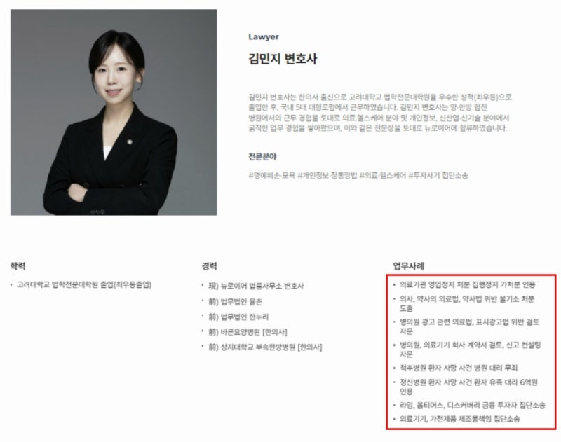 한의사출신 김민지 변호사입니다.