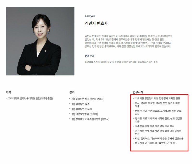뉴로이어 법률사무소 의사출신 변호사 김민지 변호사