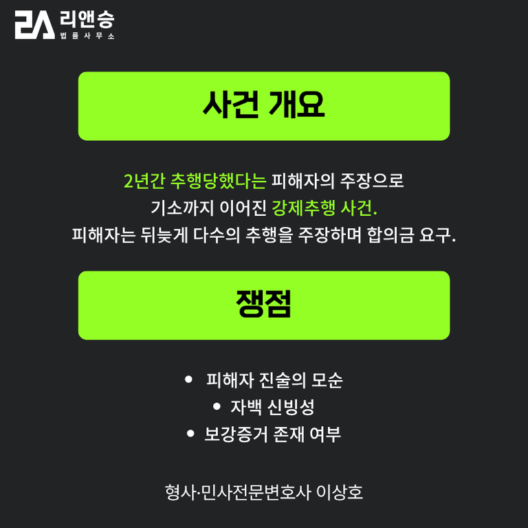 강제추행 사건은 대부분 폐쇄적 공간에서 벌어지고