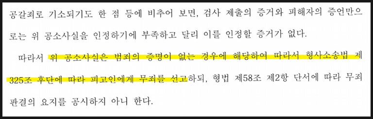 즉, 피해자 진술만으로는 합리적 의심을 배제할 수 없다는 결론입니다.