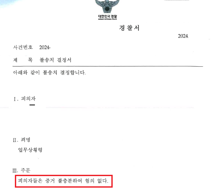 불송치 결정으로 마무리되다.