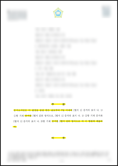 법원이 직접 확보하도록 명령하였고,