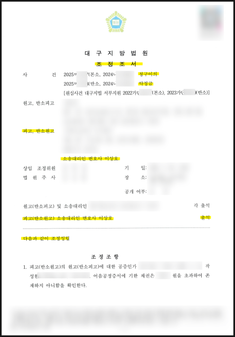 *이 사건 2심 조정조서
