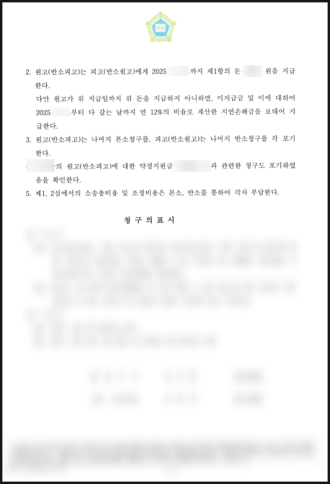 저는 1심 승소 판결을 기준으로 조정 조건을 형성하여